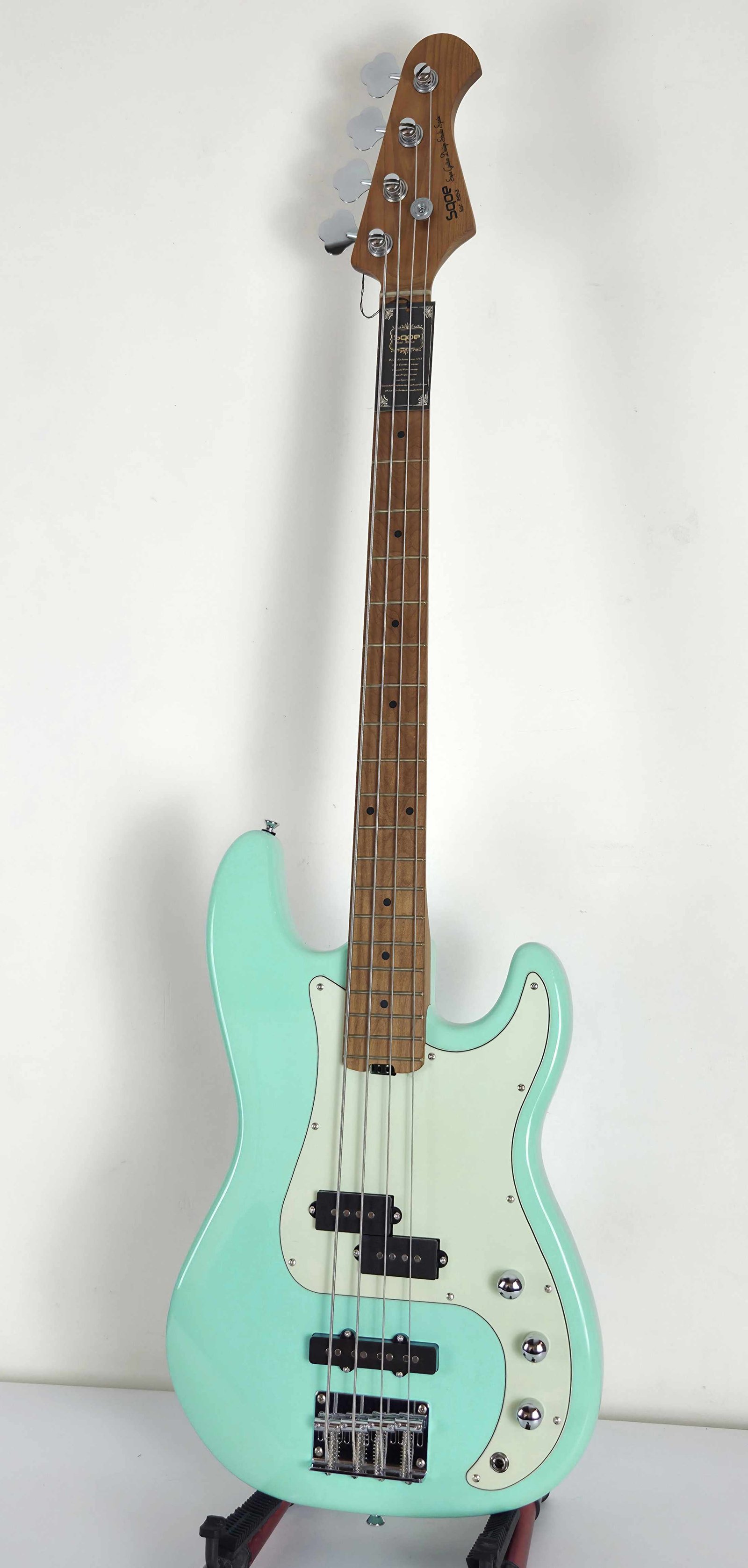 El bajo eléctrico SQOE SPJ600 es una joya asequible que combina estilo clásico con características modernas. Su cuerpo de madera de álamo ofrece un tono equilibrado y resonante, mientras que el mástil y diapasón de arce tostado brindan estabilidad y una estética elegante. Equipado con un set de pastillas PJ clásicas de SQOE, este bajo ofrece versatilidad tonal para adaptarse a diversos géneros musicales. El diseño incluye un golpeador verde menta, cejuela de 38 mm, ajuste de alma tipo spokewheel, puente de 4 selletas y clavijas diecast, todo complementado con trastes medium jumbo de níquel y controles de 2 volúmenes y 1 tono. Además, viene con estuche blando, cable, correa y set de púas incluidos.