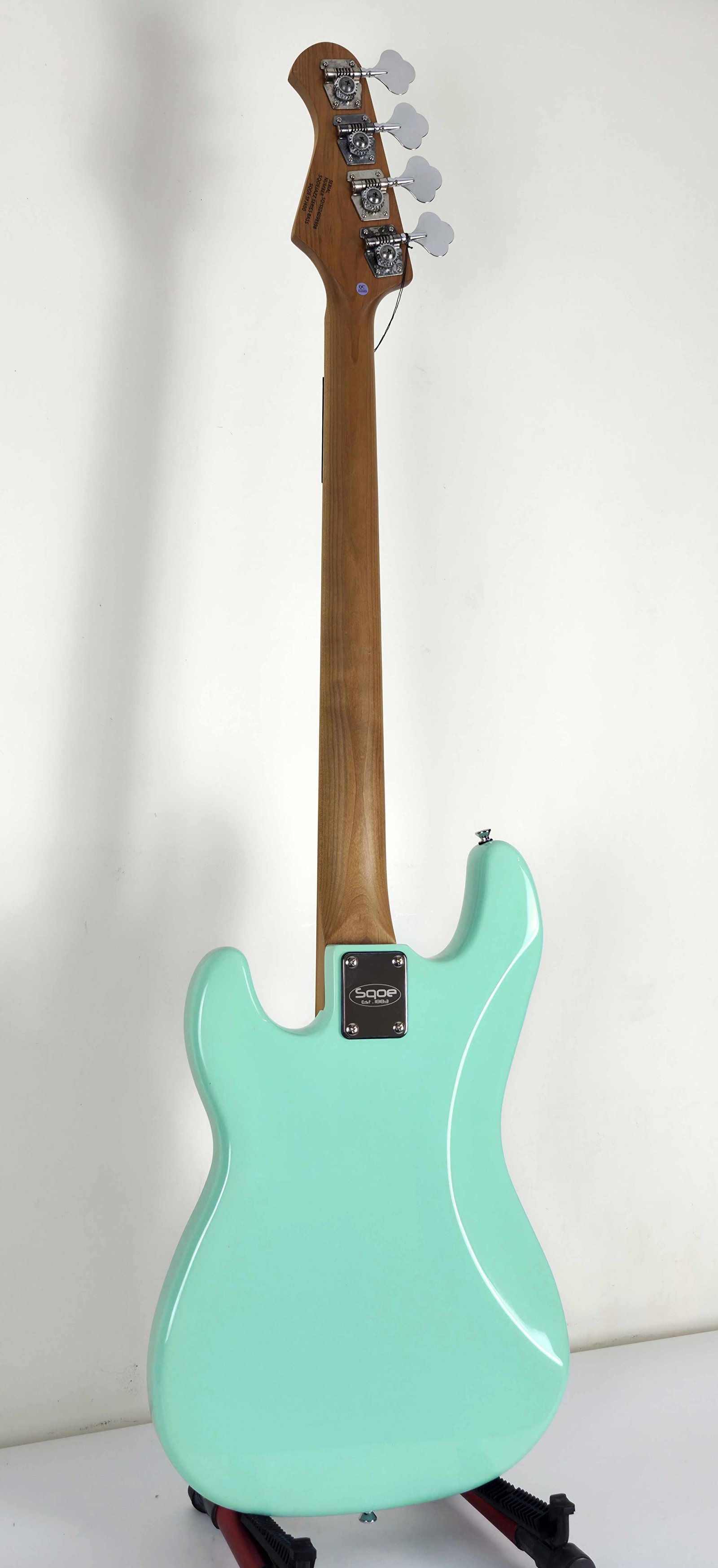 El bajo Sqoe SEBS 990 es un bajo eléctrico de escala corta diseñado para ofrecer comodidad, portabilidad y un sonido potente sin compromisos. Su cuerpo de fresno (ash) proporciona un tono equilibrado y resonante, mientras que su mástil reforzado con arce en la parte trasera, garantiza estabilidad y durabilidad. Gracias a su diseño headless, es más ligero y compacto, ideal para músicos que viajan con frecuencia. Además, su innovador sistema de cuerdas permite usar encordados convencionales sin necesidad de double ball-end, facilitando cambios rápidos y sencillos. Equipado con un circuito activo alimentado por batería y un práctico interruptor toggle, el SEBS 990 de Sqoe es una opción versátil y moderna para bajistas que buscan movilidad sin perder calidad de sonido.