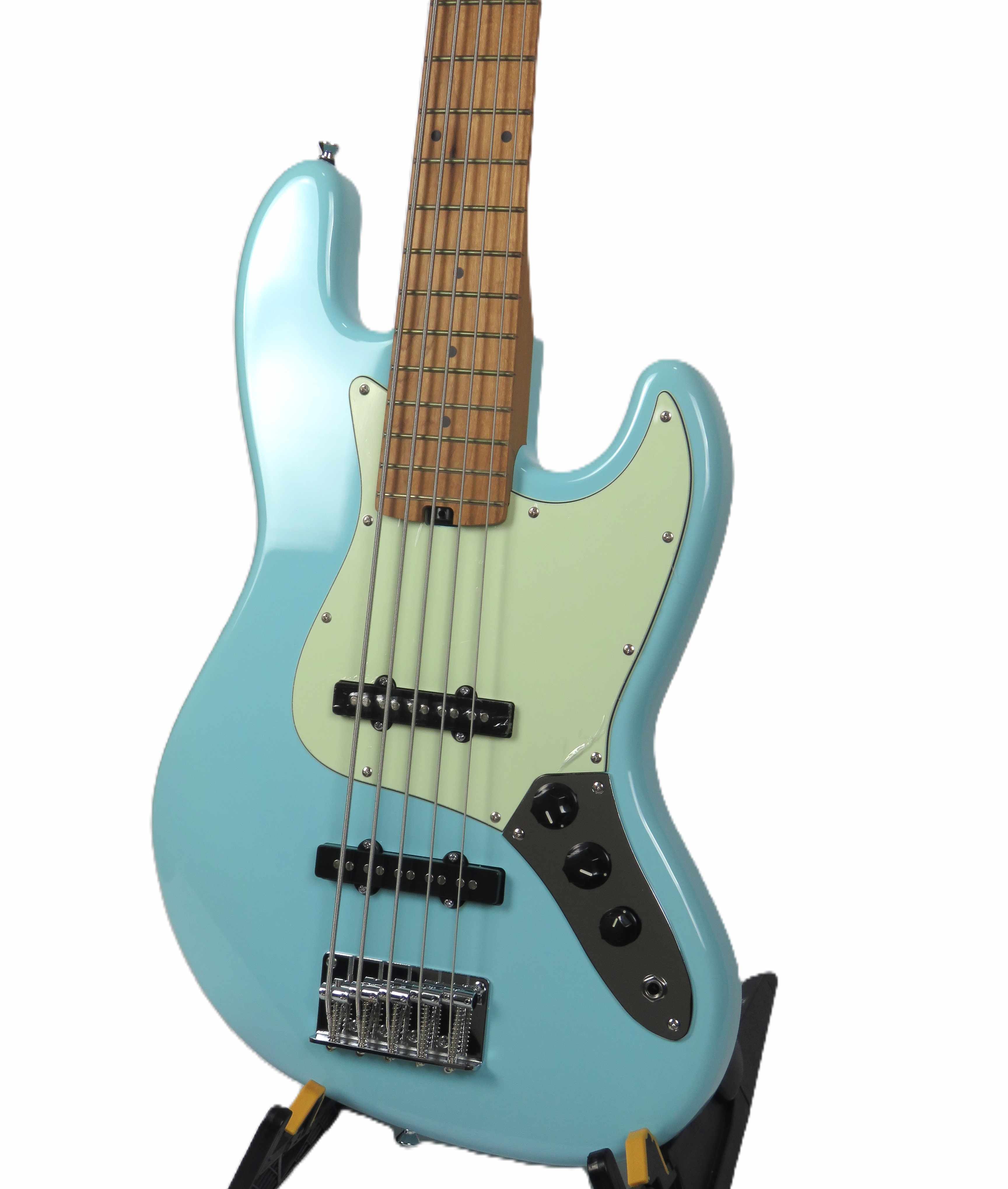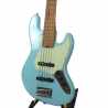 El SQOE SJB650 es un bajo de 5 cuerdas que combina estilo clásico con prestaciones modernas. Su cuerpo de álamo brinda un tono equilibrado y ligero, mientras que el mástil de maple roasted en perfil Modern C, junto al diapasón del mismo material, ofrece una sensación suave y precisa al tocar. Monta un set de pastillas SQOE Classic JB V que entregan un sonido versátil y articulado, ideal para estilos como jazz, funk o rock. Incluye un puente de 5 selletas, truss rod con ajuste spokewheel, afinadores diecast estilo JB, y controles de 2 volúmenes + 1 tono. Detalles como el pickguard verde menta y los trastes medium jumbo de níquel completan su construcción. Se entrega con softcase, cable y correa incluidos, listo para el escenario o el estudio.
