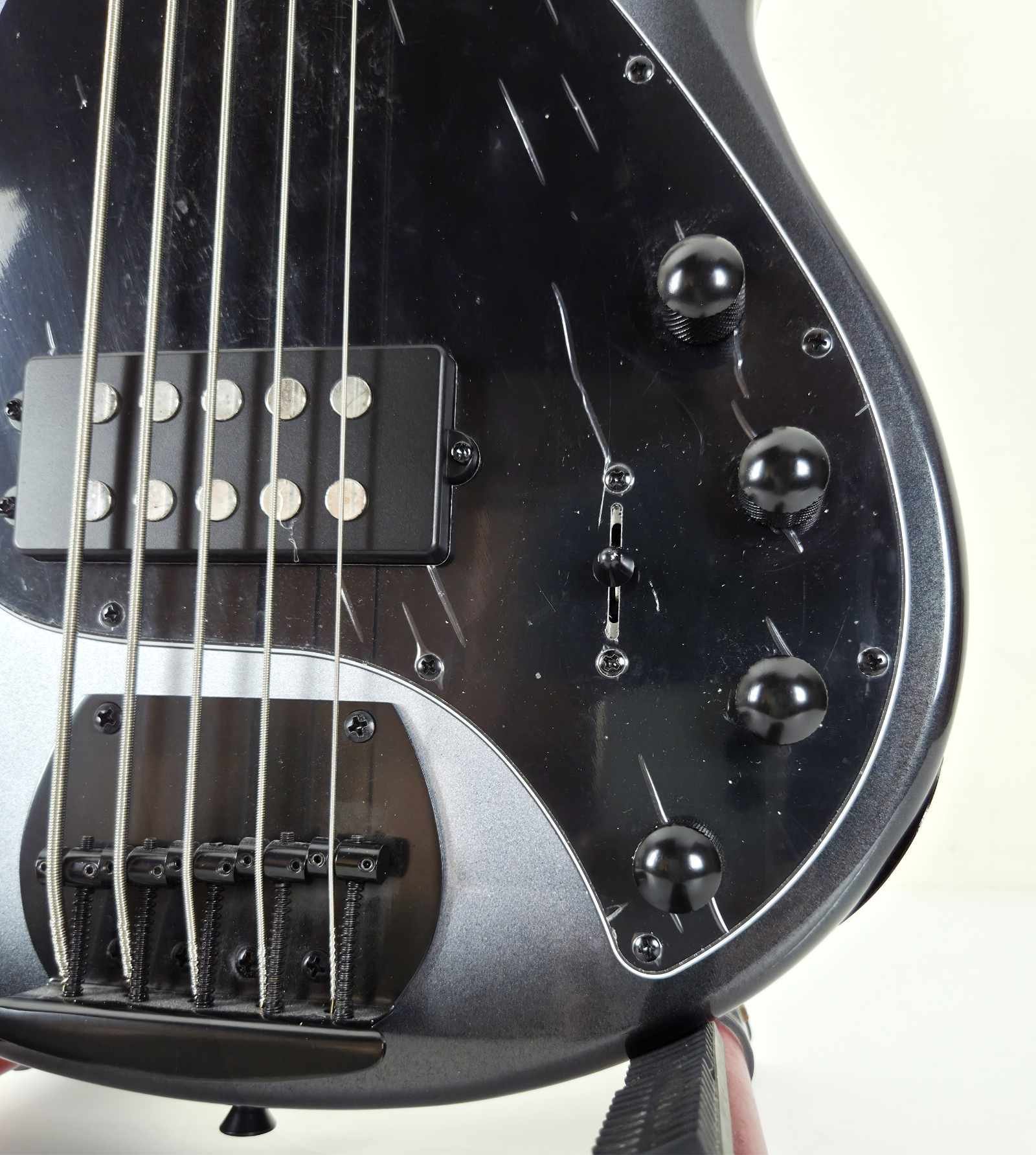 El Sqoe SJB750 es un bajo eléctrico de 5 cuerdas diseñado para bajistas que exigen potencia, estilo y precisión en cada nota. Con un cuerpo de okoume con tapa tipo Burl, mástil de arce canadiense tostado (carbonized roasted maple) y 20 trastes con binding White Shell, este modelo combina materiales de alta calidad con una construcción impecable. Incorpora dos pastillas Wilkinson JB de bobina simple que ofrecen un sonido definido y versátil, perfecto para cualquier género, mientras que su puente Wilkinson WOB51 y el pickguard de acrílico transparente completan un diseño elegante y funcional. Su acabado brillante resalta cada detalle, haciendo del SJB750 una herramienta confiable tanto para el estudio como para el escenario.