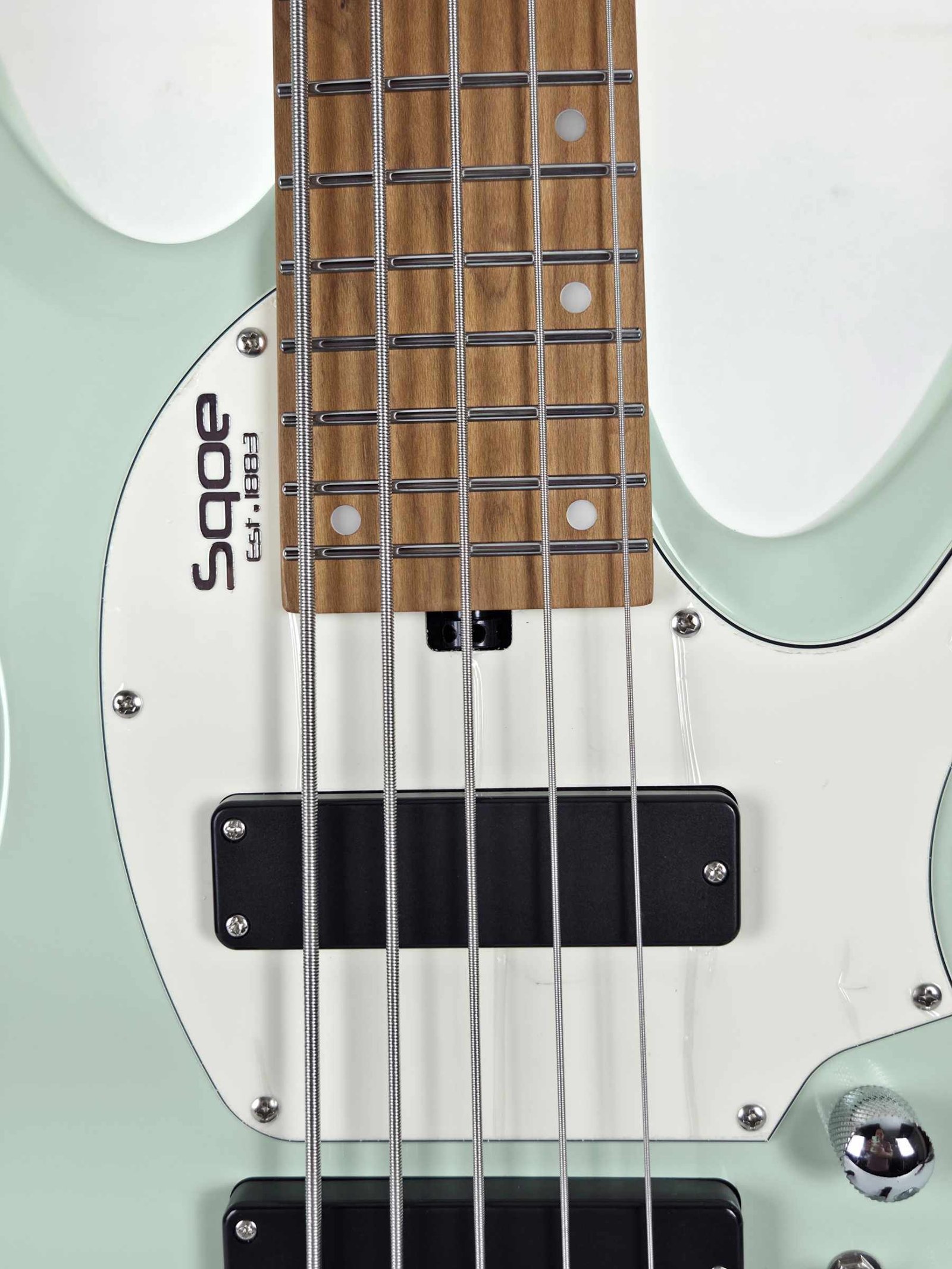 La electrónica es igual de seria: set de pastillas HSS Alnico V hechas a mano por el Custom Shop de SQOE, control de volumen, dos tonos, selector de 5 posiciones y mini switch para coil split. Todo bajo un blindaje completo con pintura conductiva, para un sonido limpio y libre de ruidos.