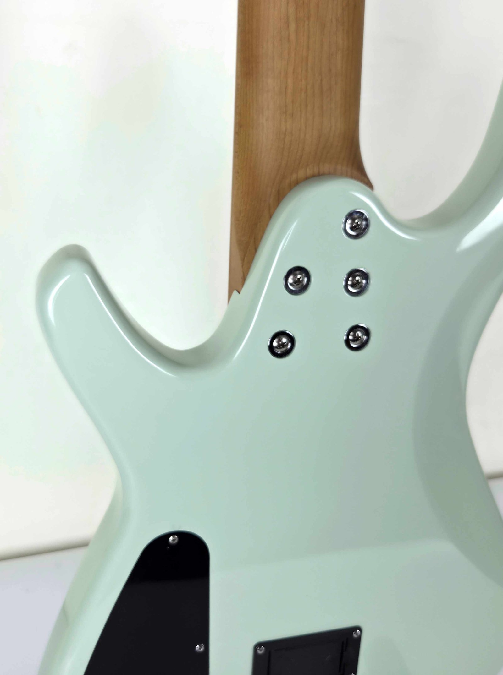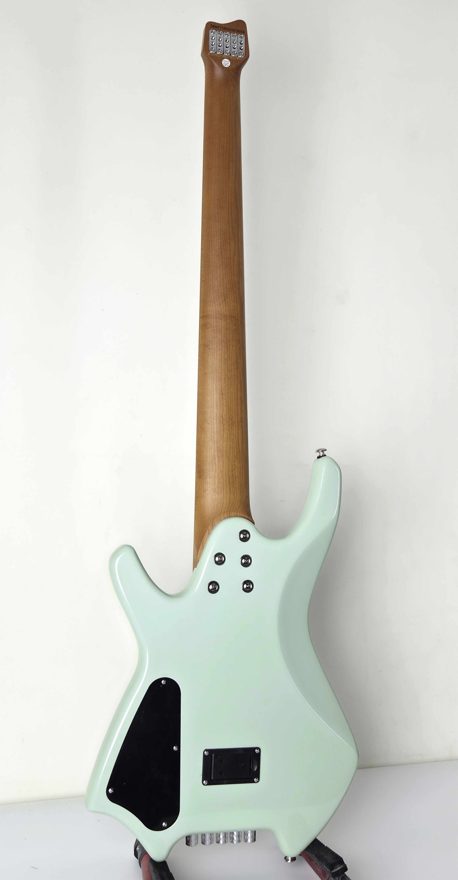 Cada unidad se fabrica con cuerpo de aliso americano, mástil canadiense tipo Modern C con acabado brillante, y un diapasón de palo rosa con radio de 12” y trastes jumbo antioxidantes de 2.9 x 1.2 mm, perfectamente redondeados para una comodidad que se nota en cada bend.