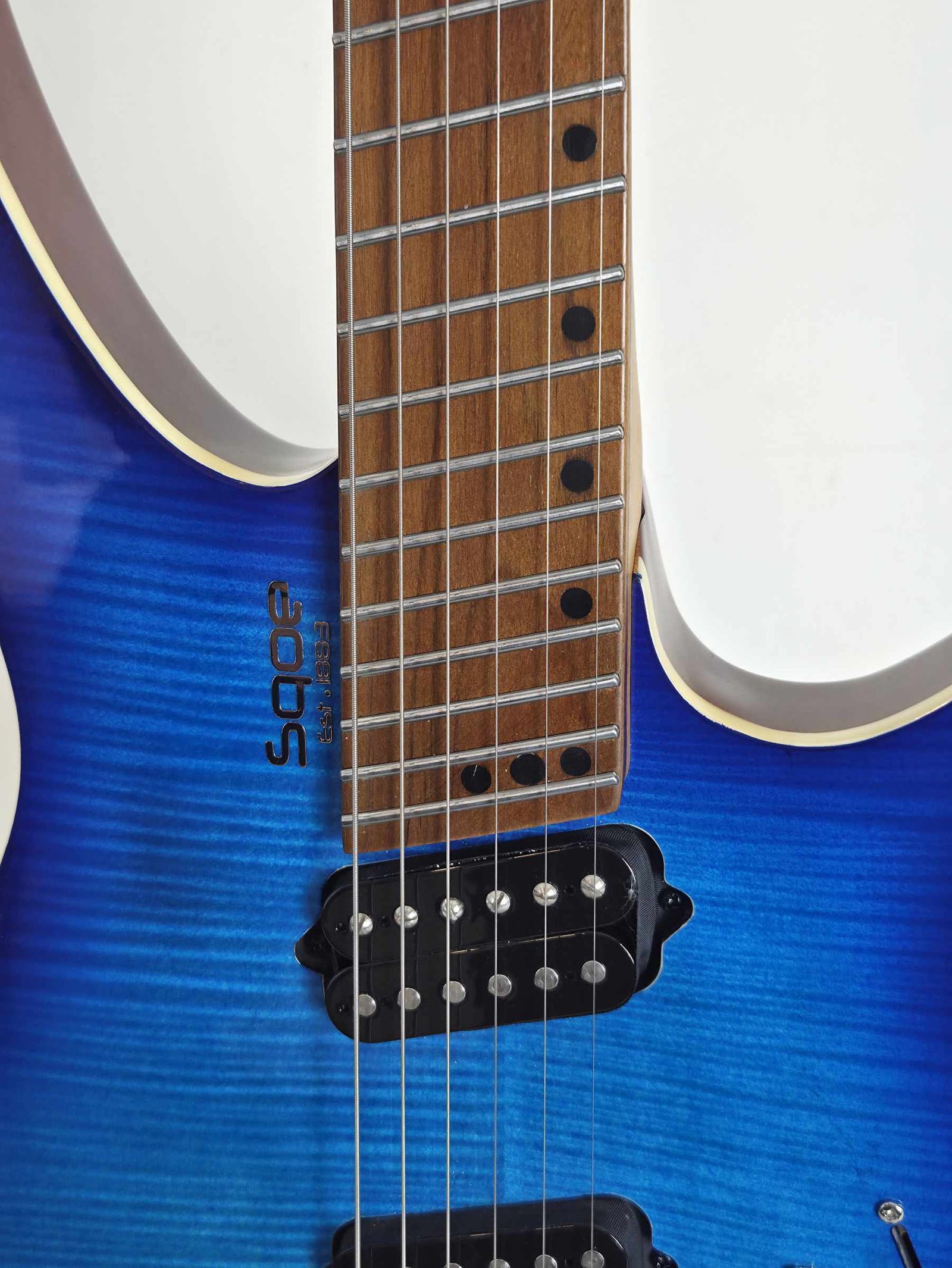 La SQOE SEIB995 redefine la ergonomía y el rendimiento moderno en una guitarra Headless de alto nivel. Construida con un cuerpo de caoba y una impactante tapa de Arce Flameado, esta guitarra no solo destaca visualmente, sino que ofrece una resonancia profunda y equilibrada. Su mástil de Arce Tostado (Roasted Maple) con perfil "Deep C" garantiza una estabilidad climática superior y un tacto sedoso, complementado por un diapasón multiescala (27"-25.5") con 24 trastes en abanico (Fanned Frets). Este diseño permite una tensión de cuerdas óptima y una entonación perfecta en todo el registro.