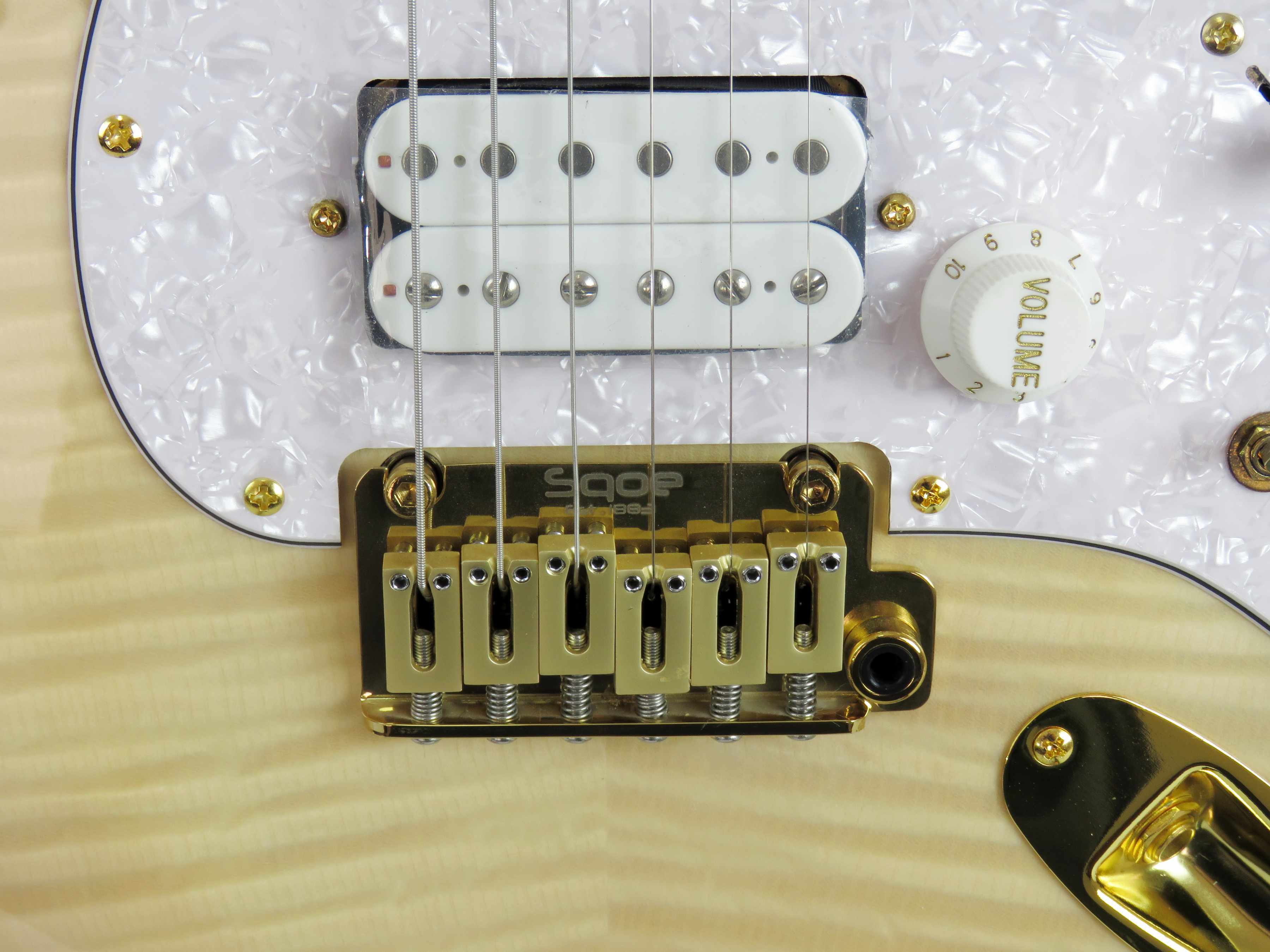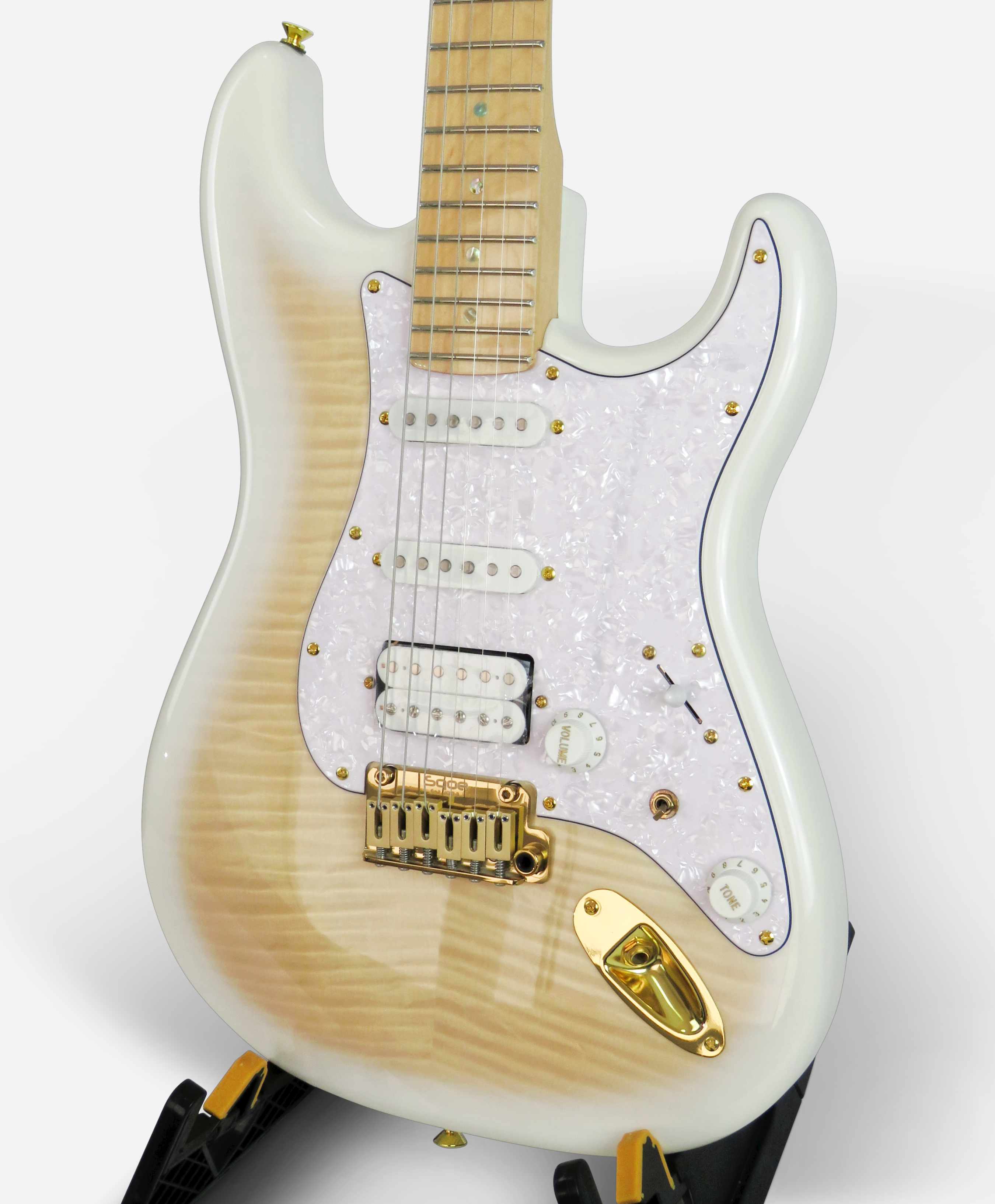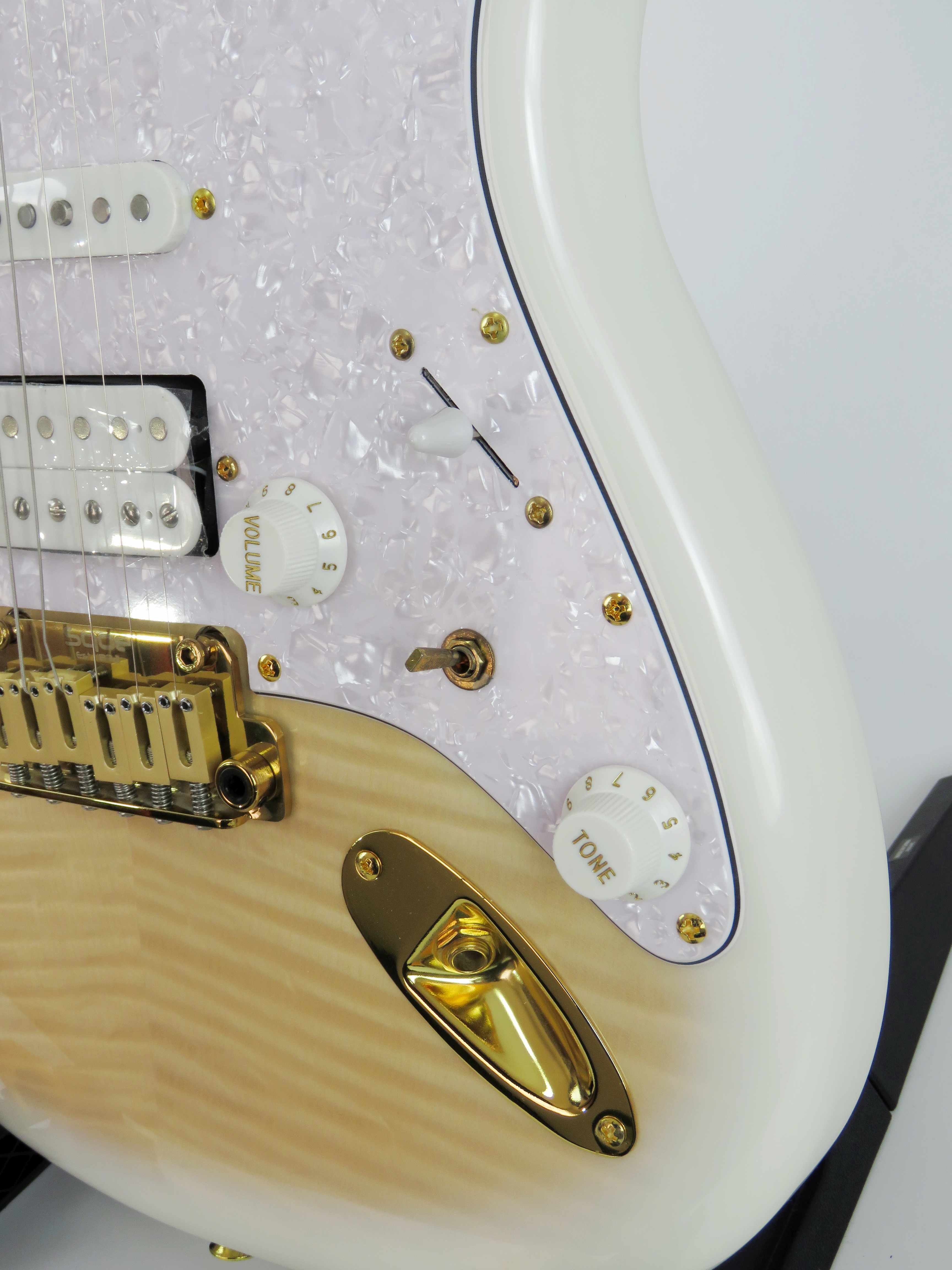 El set de pastillas SQOE Alnico V HSS Classic 60s ofrece desde tonos limpios hasta distorsiones con cuerpo, con un miniswitch para coil split que amplía tu paleta sonora. El sistema de trémolo de 2 puntos da una acción suave y estable. Incluye afinadores vintage diecast, cejuela Nubone y unión del mástil biselada para facilitar los solos en los trastes altos.