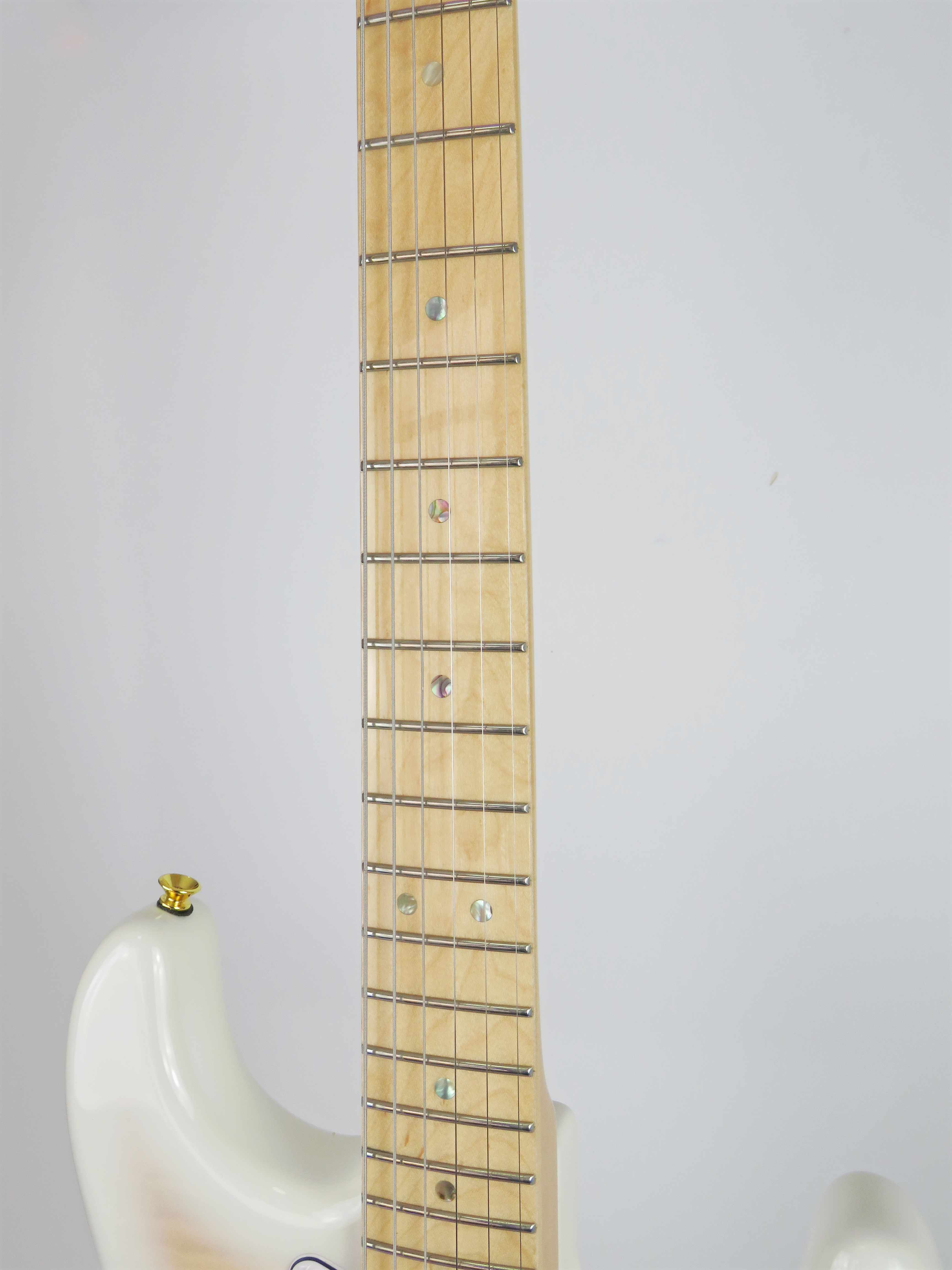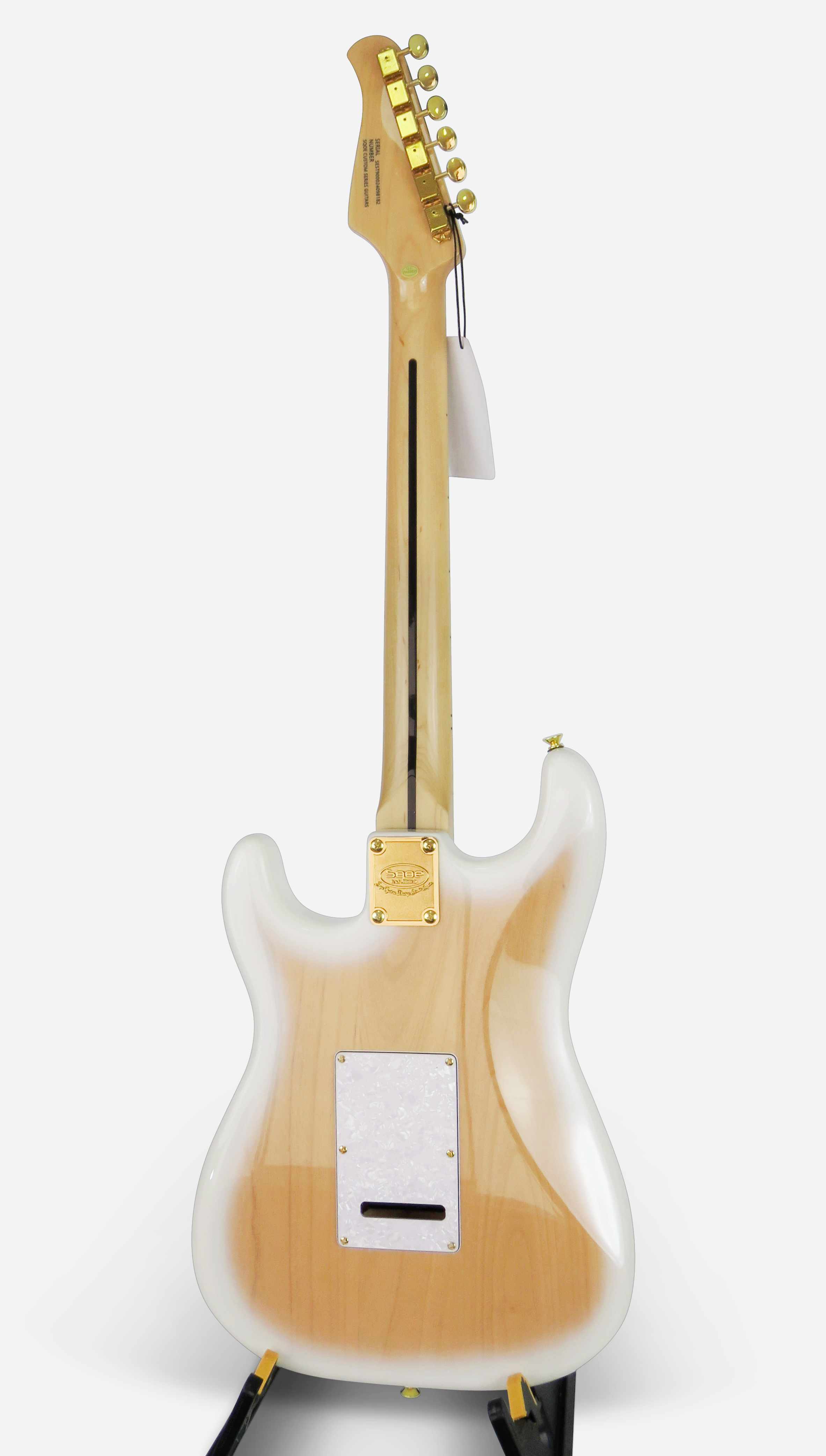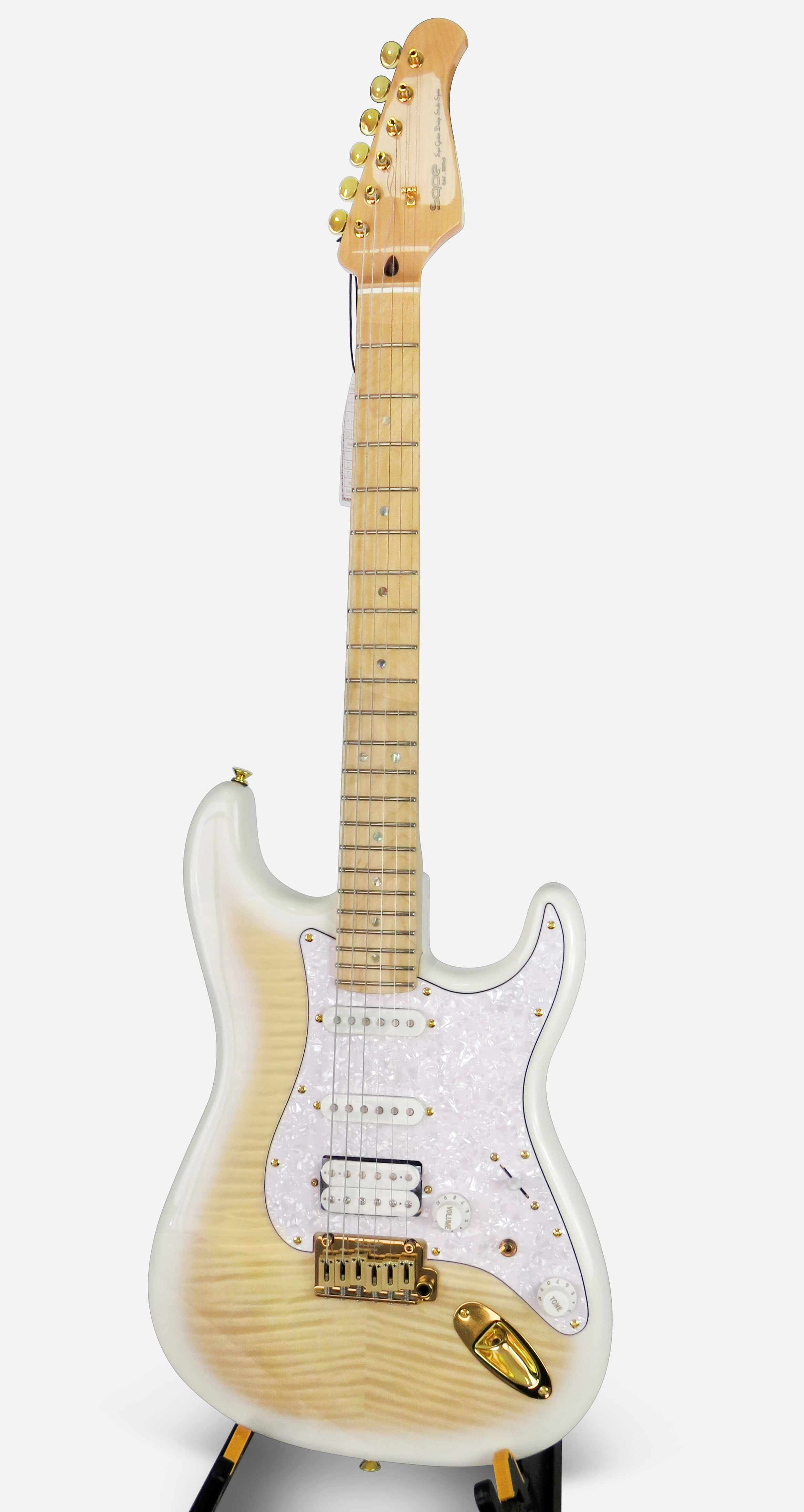 El set de pastillas SQOE Alnico V HSS Classic 60s ofrece desde tonos limpios hasta distorsiones con cuerpo, con un miniswitch para coil split que amplía tu paleta sonora. El sistema de trémolo de 2 puntos da una acción suave y estable. Incluye afinadores vintage diecast, cejuela Nubone y unión del mástil biselada para facilitar los solos en los trastes altos.