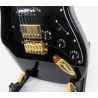 La guitarra SQOE Custom Shop es una obra maestra hecha a mano en su taller Premium, diseñada para quienes buscan una experiencia profesional desde el primer acorde. Construida con cuerpo de aliso americano y mástil canadiense de maple en perfil Modern C con acabado glossy, ofrece una ejecución cómoda y precisa gracias a su diapasón de rosewood con radio de 12", trastes jumbo antioxidantes (2,9mm x 1,2mm) y bordes redondeados. Equipada con pastillas HSS Alnico V bobinadas a mano por SQOE y un sistema de controles versátil (1 volumen, 2 tonos, selector de 5 vías y mini switch para coil split), logra una paleta tonal rica y dinámica. El sistema de apantallado interno con pintura conductiva garantiza un sonido limpio, mientras que el trémolo de 2 puntos con aleación de zinc y latón, junto a clavijas selladas locking cromadas, aseguran una afinación estable. Se presenta con un acabado brillante de uretano, estuche rígido tweed, set de accesorios premium, y certificado de autenticidad: cada detalle grita calidad sin compromisos.