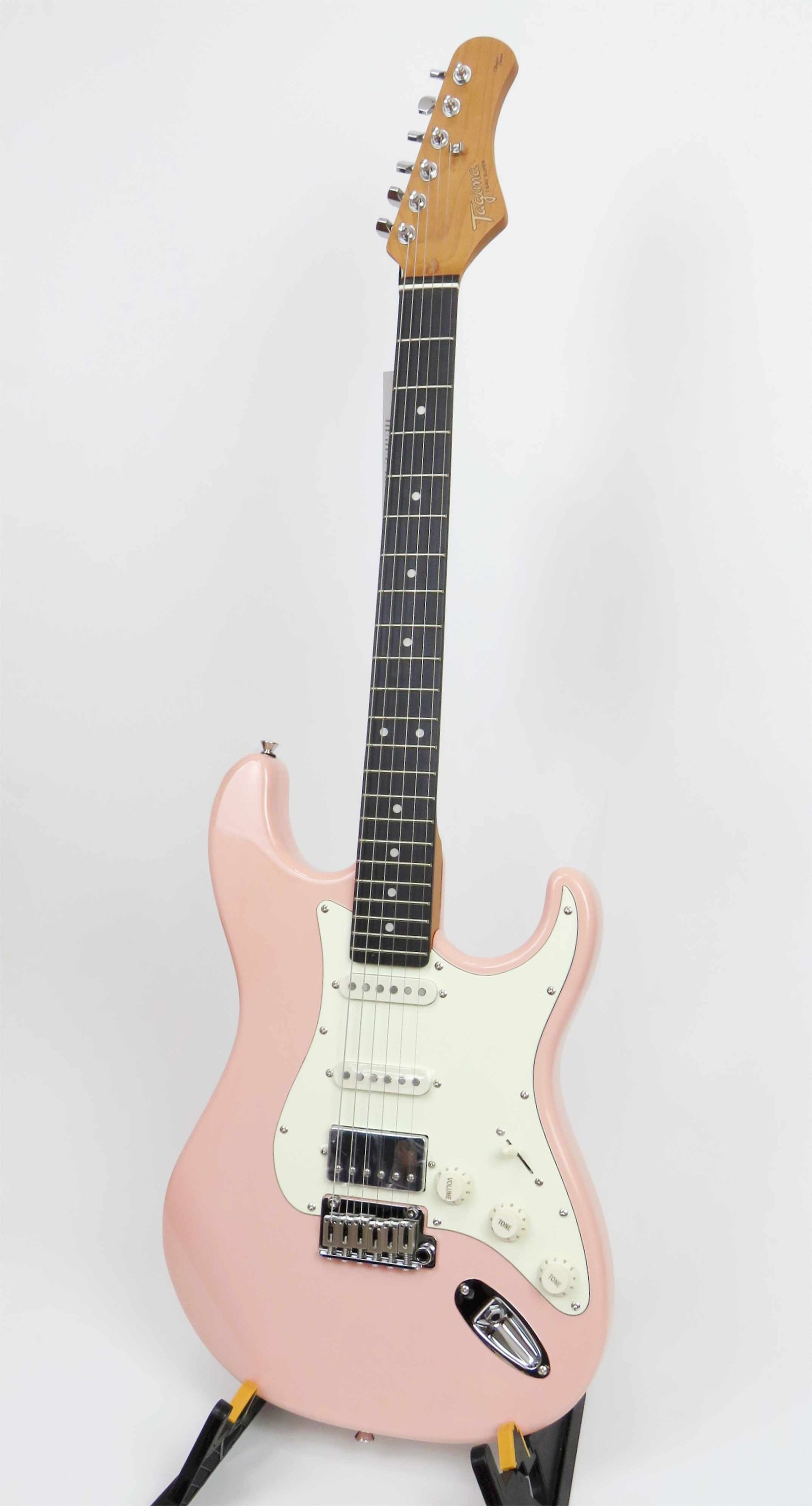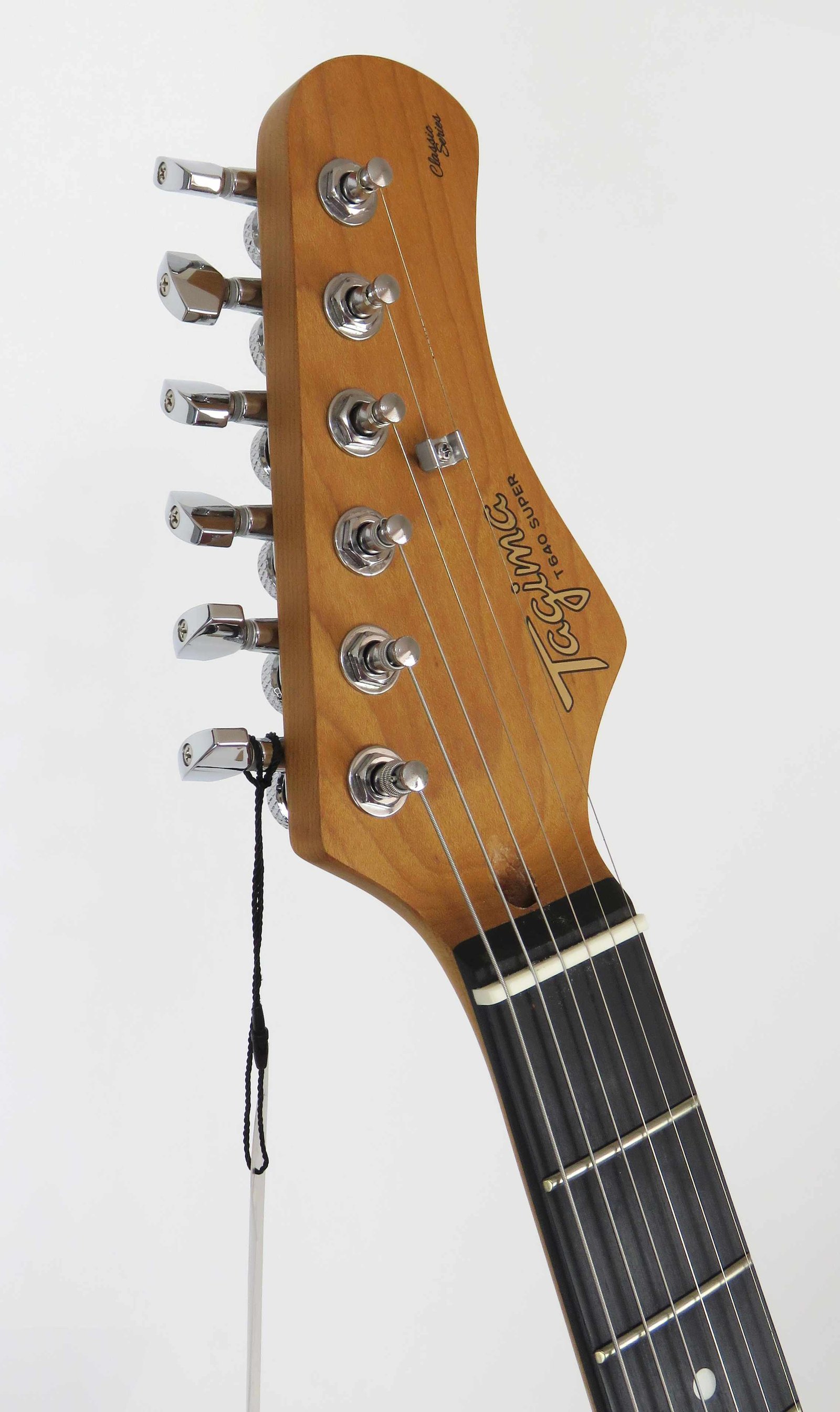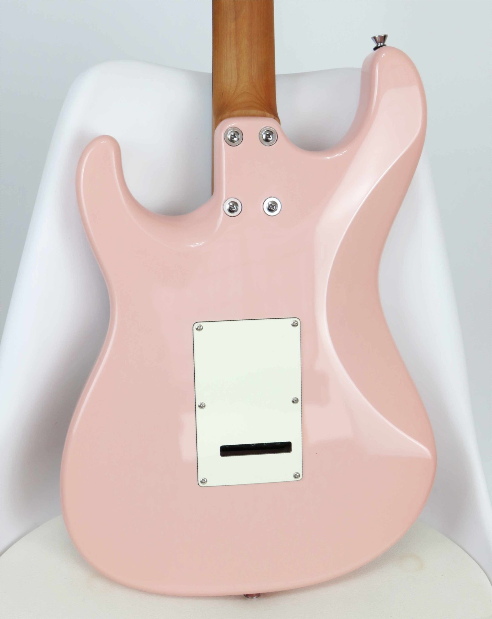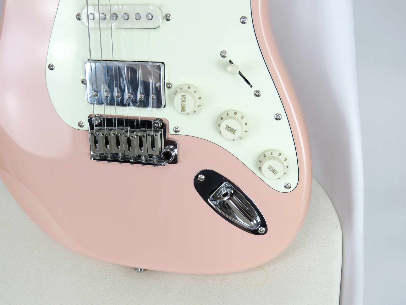 La electrónica es igual de seria: set de pastillas HSS Alnico V hechas a mano por el Custom Shop de SQOE, control de volumen, dos tonos, selector de 5 posiciones y mini switch para coil split. Todo bajo un blindaje completo con pintura conductiva, para un sonido limpio y libre de ruidos.