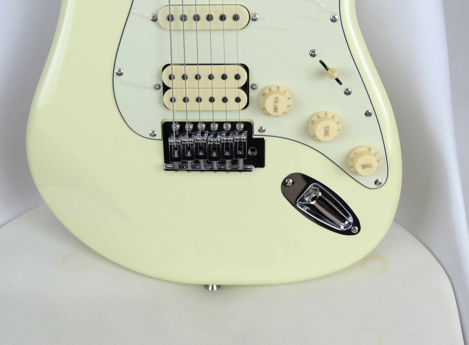 Esta guitarra está equipada con una configuración de pastillas que incluye 3 single coil, 2 single coil y 1 humbucker, lo que te permite explorar una amplia gama de tonos, desde limpios y brillantes hasta cálidos y saturados. Con los controles de 5 posiciones, 1 control de volumen y 2 controles de tono, puedes ajustar y personalizar tu sonido según tus preferencias.