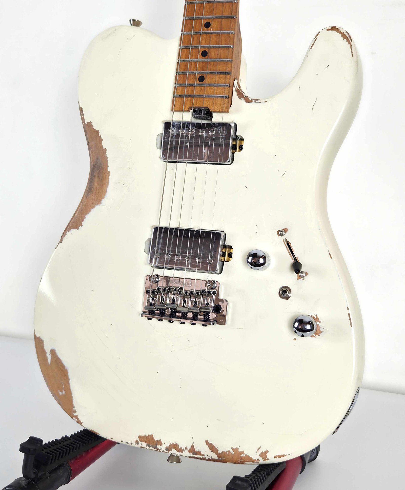 La SETL960 WH no es solo una Telecaster, es una guitarra que combina la comodidad y las características modernas con el tono clásico y la belleza del maple canadiense tostado y sin dejar de lado la apariencia a guitarra vintage detallada. El acabado de nitrocelulosa envejecido a mano le da a la guitarra un aspecto único y desgastado, mientras que la madera de alder y el mástil de maple tostado brindan un tono cálido y resonante