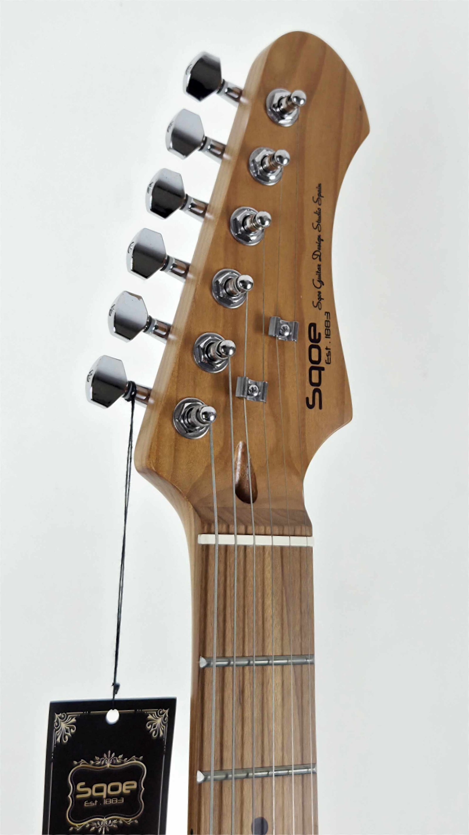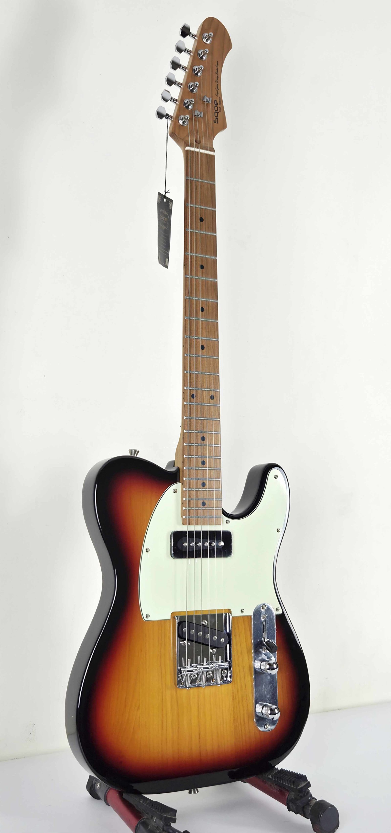 La SQOE SETL400 es mi Tele “sin excusas”: cuerpo de álamo (poplar) con acabado glossy, diapasón de roasted maple/carbonizado y 22 trastes, pensada para darte ataque, definición y esa respuesta rápida que se siente apenas haces el primer acorde. Es una guitarra directa, cómoda y práctica para tocar de verdad (ensayo, escenario o grabación), con el vibe clásico tipo TL pero con feeling moderno.